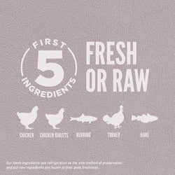- The first 5 ingredients are fresh or raw1 poultry and fish ingredients.